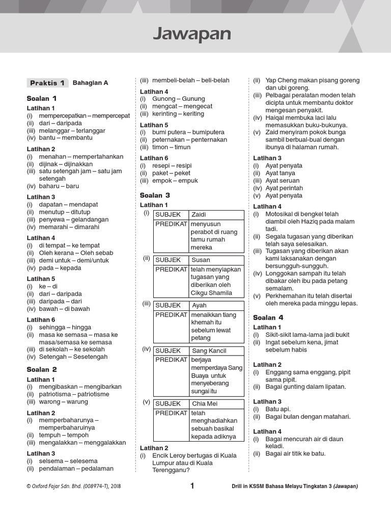 Jawapan Buku Teks Bahasa Melayu Tingkatan 1